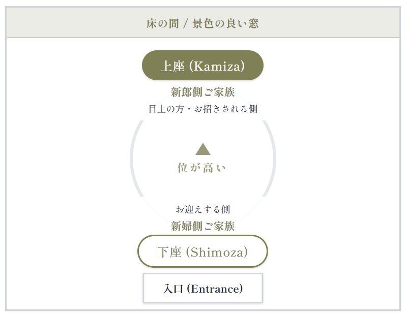 - 上座・下座の位置を決める