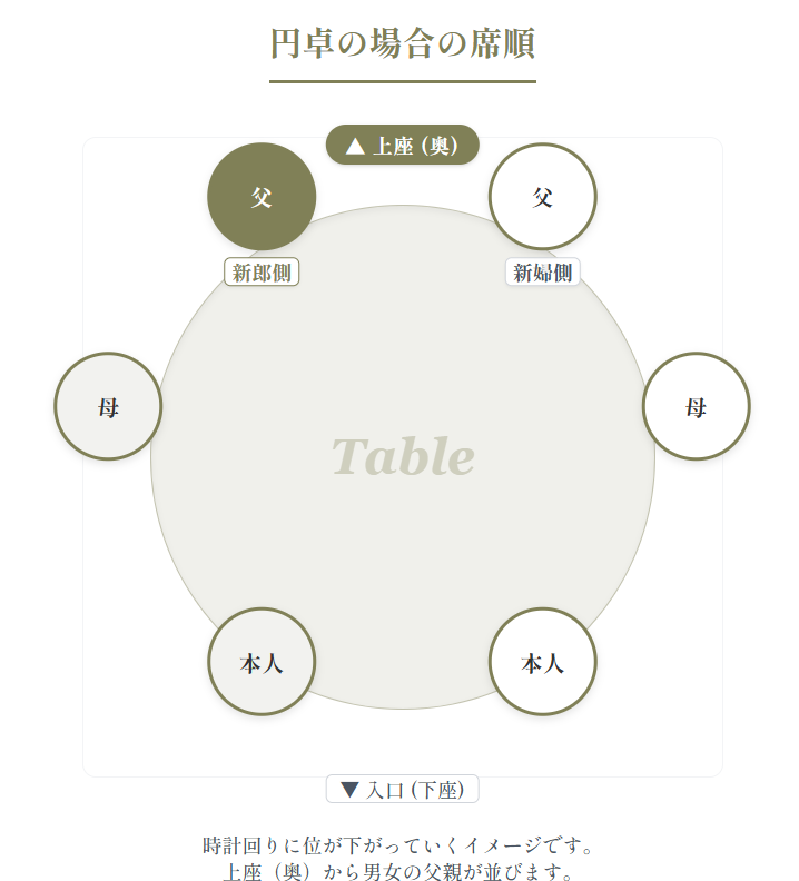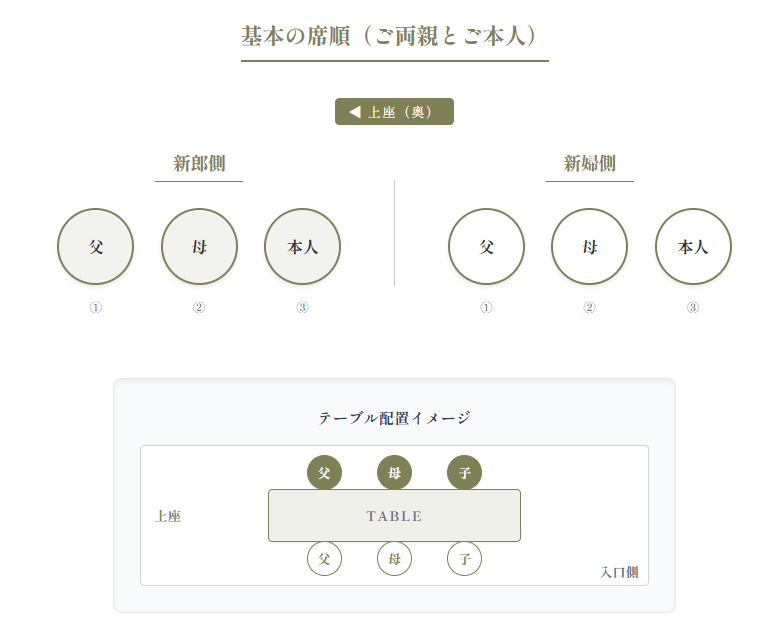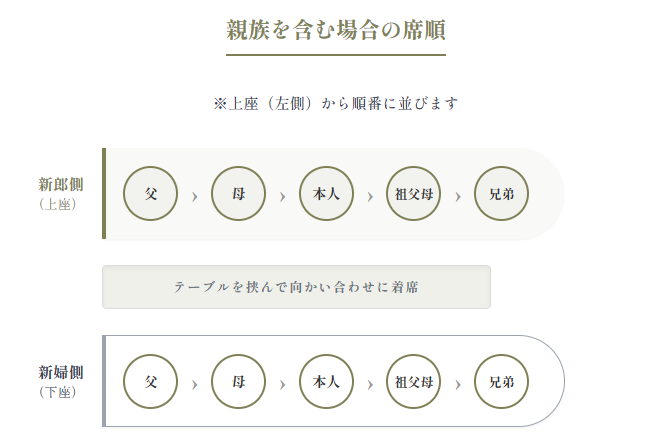 - 「親御様」「兄弟姉妹」「祖父母」が参加する場合の席順